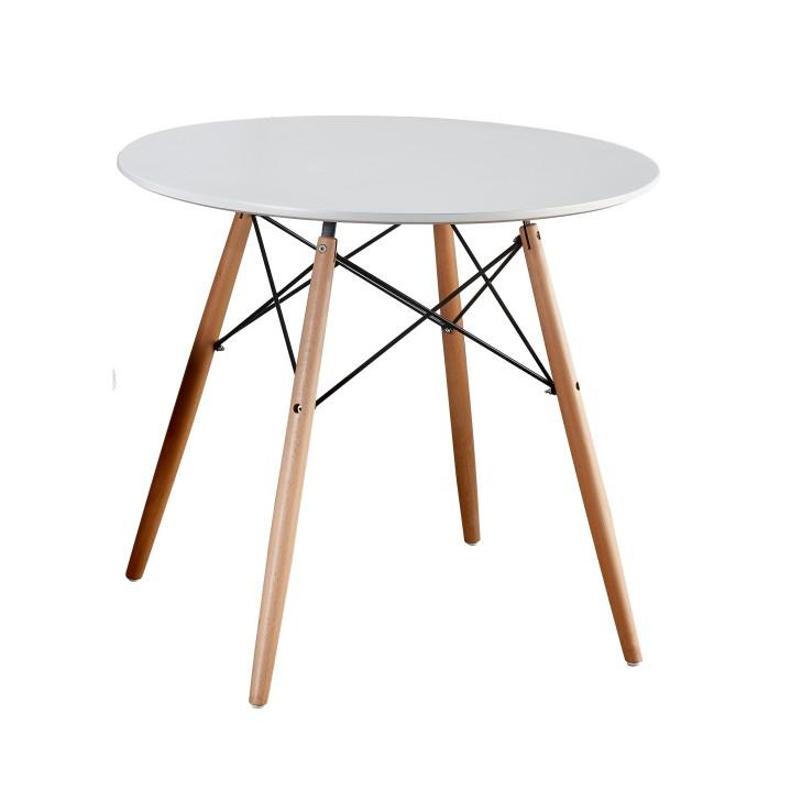 Masa dining material: MDF, lemn, piioare din metal, culoare: alb/picioare de fag, medie x Î: 80×74 cm.
