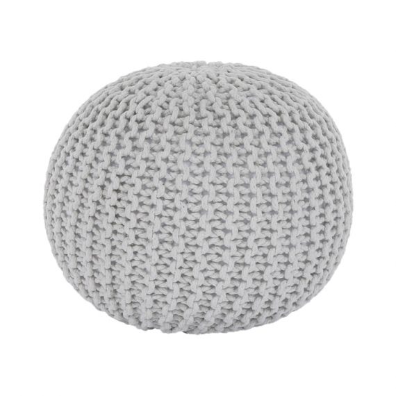 Taburet cu stil în design modern. Material şi model: bumbac, miez din polistiren, alb/şuviţat. Dimensiuni (LxGxÎ): 50x50x35 cm.
