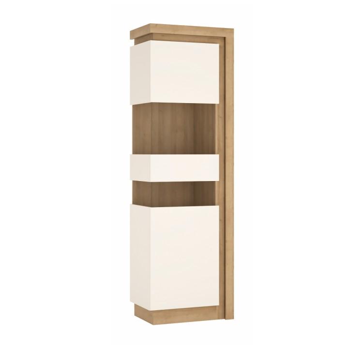 Vitrină LYOV03L din setul sectorizat LEONARDO în culoare stejar riviera/alb cu luciu extra ridicat